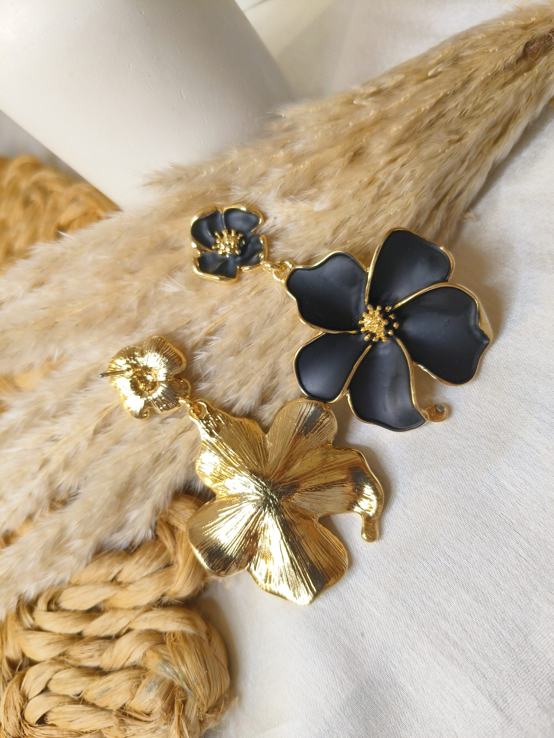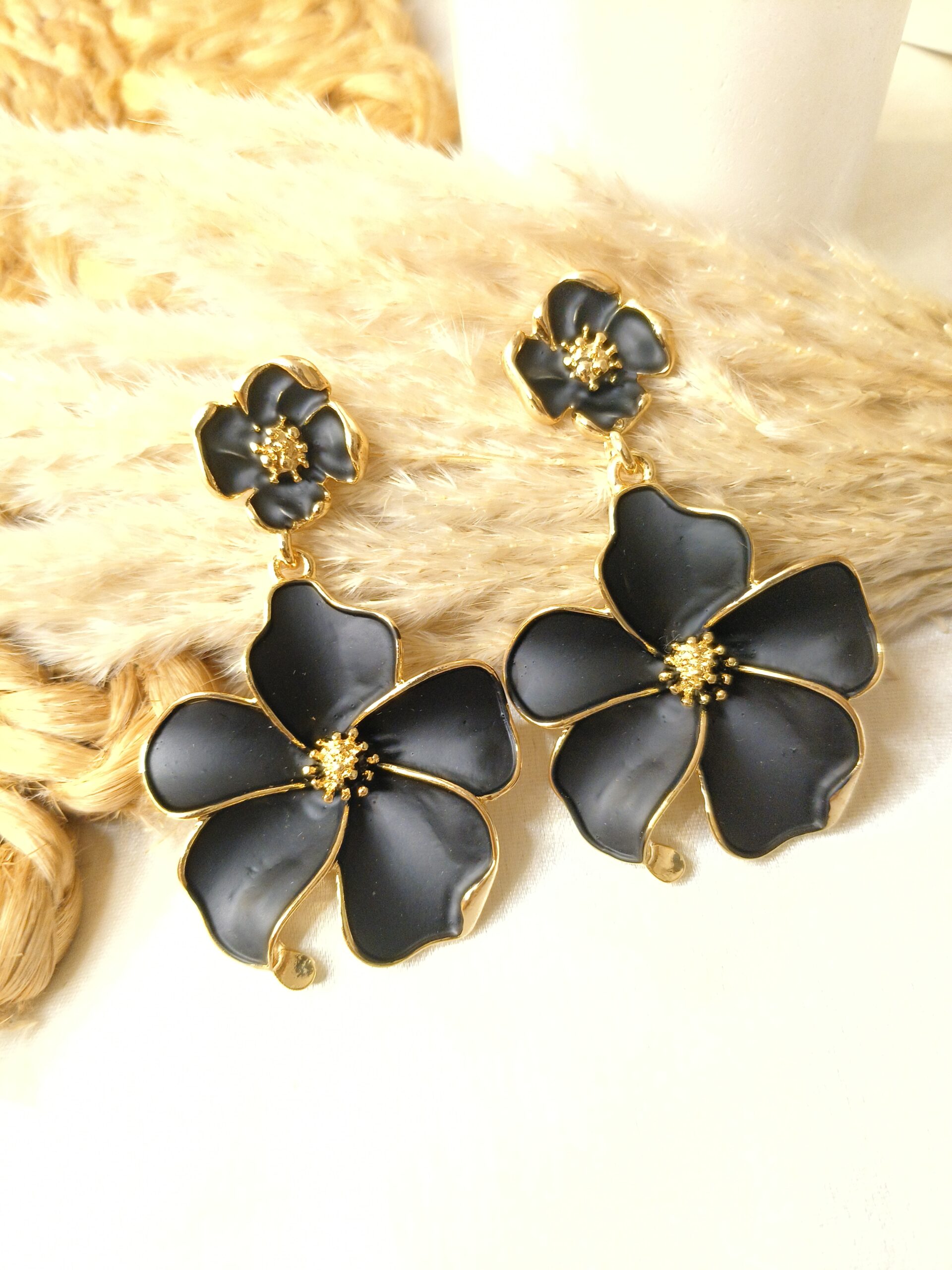 Elevate your elegance with our Midnight Bloom Statement Earrings — a perfect blend of bold sophistication and timeless charm. Designed to make heads turn, these floral-inspired earrings feature a striking black enamel finish beautifully outlined with a radiant gold-tone frame.